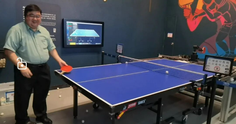 美国《美中头条》社长谢忠与人工智能乒乓球机器人